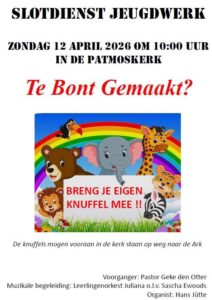Liturgie Liturgie 12 April 2026 Te Bont Gemaakt? De knuffels mogen vooraan in de kerk staan op weg naar de Ark Lees verder » 8 april 2026 Geen reacties